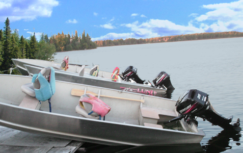 outboard motors, including gas, paddles, life jackets and emergency